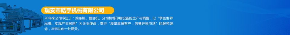 瑞安市皓宇機械有限公司是瑞安一家私營責(zé)任有限公司,注冊資金200萬,員工40余人,是具有獨立法人地位,專業(yè)生產(chǎn)定做各種非標(biāo)準(zhǔn) 涂布機 、 復(fù)合機 、 印刷機 、...[詳細(xì)]